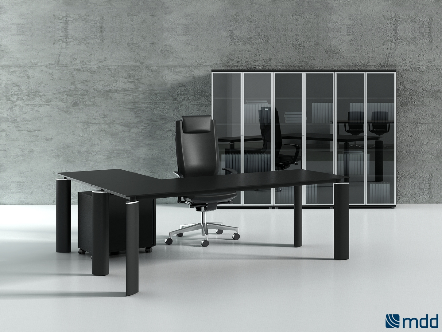 Meble biurowe MDD CRYSTAL to ekskluzywna propozycja dla tych, którzy w meblach cenią styl i klasę. Perfekcja, czysta forma, przestrzenność i trzymanie się zasady im mniej tym lepiej, starannie dobrane i przemyślane proporcje. Jedyny element dekoracji stanowi nakładka chromowana umieszczona w górnej części nogi. Szykowne, kontrastujące i wykonane z wyszukanych materiałów wykończeniowych meble w stylu glamour, to przede wszystkim blask i często odważne ale wysmakowane połączenia kolorystyczne.