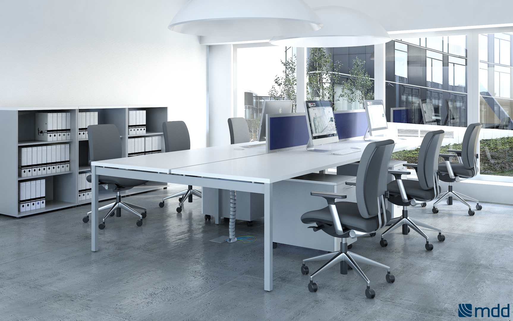System mebli pracowniczych MDD OGI Y zapewnia tworzenie ciekawych kompozycji kolorystycznych z płyty, tkaniny i metalu. Modułowość systemu umożliwia tworzenie prostych rozwiązań wielostanowiskowych miejsc pracy. Szafy i regały z drzwiami przesuwnymi i żaluzjowymi są doskonałym rozwiązaniem w pomieszczeniach o małych i dużych powierzchniach użytkowych.